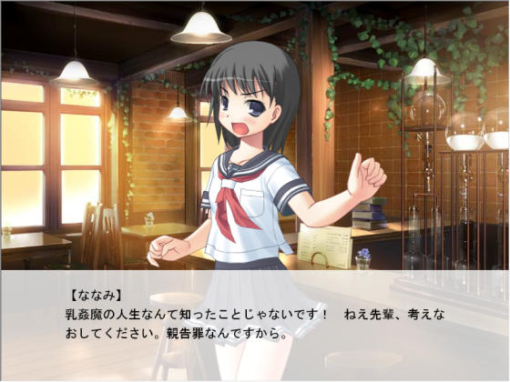 *注意! この作品は度し難いバカゲーです。「やっちまった……」「胸好夫(むね よしお)」は、ただただおっぱいが好きなだけの学生。親友の「新田」とともに、いつも身の周りに溢れているおっぱいを楽しみ、しかしそれを好きなだけ楽しめないために抑圧されていた。ある時、欲望が爆発した好夫は、巨乳幼なじみの「みるく」をパイズレイプしてしまう。そのことを、大金持ちの後輩「ななみ」に知られてしまった好夫は、ななみ率いる黒服軍団に追われるハメになってしまう。捕まったら島流し。果たして好夫は、追手から逃れ、おっぱいを楽しみ続けることができるのか?・登場人物・・胸好夫(むね よしお)ただただおっぱいが好きなだけの男。このたび、幼なじみを乳姦し、追われるハメになる。・・みるく好夫の幼なじみ。巨乳美女。今回好夫襲われ、パイズレイプの被害者に。・・新田好夫の親友で同士。好夫が巨乳好きなのに対して、新田は貧乳好き。実は天才的なハッカー。・・ななみ好夫の後輩。貧乳。家がすごい金持ち。おっぱいバカの好夫を敵視している。今回、私刑団を構成し、好夫を島流しにしようとする。とあるコンプレックスもち。
