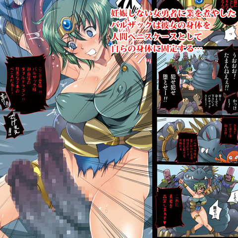 人々に裏切られ、路上の公開牢獄に投獄された女勇者パーティ。投獄から一年が過ぎるも、一向に魔物の子を孕まない女勇者に業を煮やしたバルザックは彼女の身体を自らのペニスに固定し、人間ペニスケースとして「装着」する。街中をつれまわされ、其処彼処でオナホールとして使用され晒し者にされる女勇者。かつて救ってきた人々から送られる侮蔑と欲情の眼差しに高潔な彼女の心は折られ、蝕まれていく…オールカラー同人誌のデジタル版!お手軽なPDFと高解像度Jpegの2ファイルで収録!勇者路上投獄~拘虐の公開穴検査~王女路上独房~サントハイムの落日~路上連続絶頂~恥辱の強制昇天地獄~姉妹路上淫舞~メダパニ催眠陵辱ストリップ~王女路上出産~公開輪姦分娩刑~…の続編になります。簡単な状況説明がありますので前作を見ていなくても問題なく楽しめますが、よろしければ是非、前作も併せてお楽しみください。