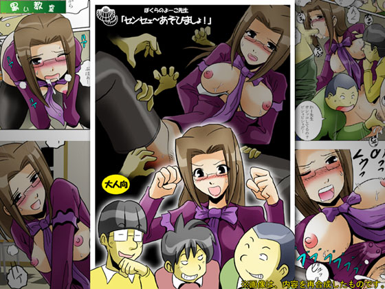 よーこ先生は、きれいでやさしいのですが、おこるとこわいです。今日は、ともだちとエッチな本を見ていて、おこられました。ともだちのお兄ちゃんの本です。先生は本をとり上げました。ぼくらは返してと言いましたが、ダメでした。だから、先生をどれいにすることにしました。本の通りにすればどれいになるはずです。先生のおっぱいをモミモミすると、ぼくらは、チ○コが痛くなってきました。先生はそれを治してくれました。