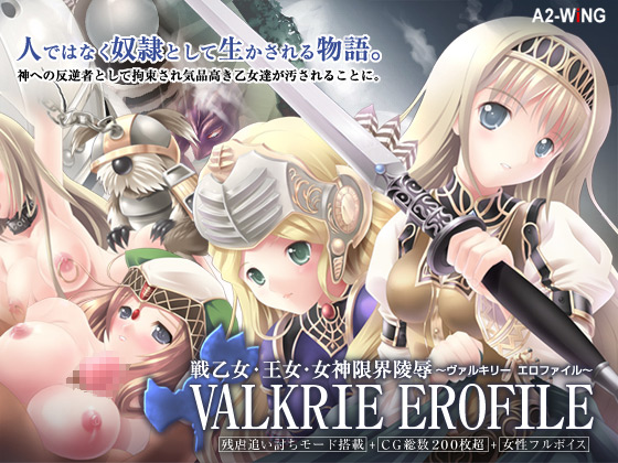 ヴァ○キリープロ○ァイル2より、王女アリー○ャ、戦乙女シル○リア、豊穣神フ○イ。陵辱・調教・獣姦エロファイル!ディパ○城が神々によって襲撃を受け崩壊する。そして王と王紀も捕らえられることに。王の血を受け継ぎながら幽閉されていた王女アリー○ャ。仲間と共に救出に向かう。圧倒的な力を誇る神族との屈辱の敗戦。性奴隷として日々を過ごし妊娠させられる。お腹に新しい命を宿したまま処刑台に吊るされ、陵辱の数々を受けることになる。恐怖に怯えるアリー○ャ。白い肌はムチの痕で傷つけられ膣内からは吐き出された精液が卑猥に垂れ落ちる…。かつて自国の兵士達からも陵辱されることに…。とある少女に魂を転生させられたシル○リア。「神々へ背く存在として反逆者ヴァルキリー、シルメ○アを捕えよ!」今の力では神族には到底及ばない…!!神族からの追撃を逃れる日々が続いていた。行く先々で、モンスター、神族の男に犯され陵辱され媚薬付けに…!!一方、フ○イもまた、主神オーデ○ンの命令によりシルメ○アを捜索していた。下界に舞い降り捜索の邪魔になるモンスターを罵倒、蹴散らしてゆく…!!度重なる戦闘で隙を狙われ戦闘に敗北を…!そしてシルメ○ア捜索も難航し苛立ちを覚えるオーデ○ン…!!闘技場・地下牢屋・処刑台・数々のフィールドで壮大な物語が展開…!!気品高き戦乙女達が汚されてゆく…!!★CG総数200枚超(エロCG率98%)★全員拘束具着脱有(アイマスク・口枷・その他)★ヒロインフルボイス(迫真に迫る喘ぎ声で臨場感を高めます…!!)★選択肢多数(さらに残虐過激に犯すこと可能…!!物語に深みを)●詳細はこちらです↓http://idle.sakura.ne.jp/a2wing/product001.htm |