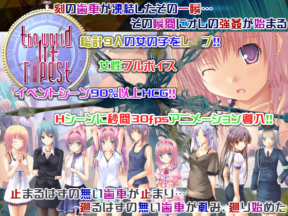主人公・大野慎也は大学三回生の前期を終えたばかりの、至って善良な大学生時間を止めるという特殊能力を除いては……。時間が止まった空間……そこには標的である無数の女が……犯せっ!女教師・スク水・ブルマ・婦警・女子アナ・双子・ロリっ子 etc...ありとあらゆる女を犯しまくれっ!!こんな世界……今まで知らなかった……。Welcome to The World of Rapest★作品紹介HP★http://softhouse-seal.com/Re_verse/top.html